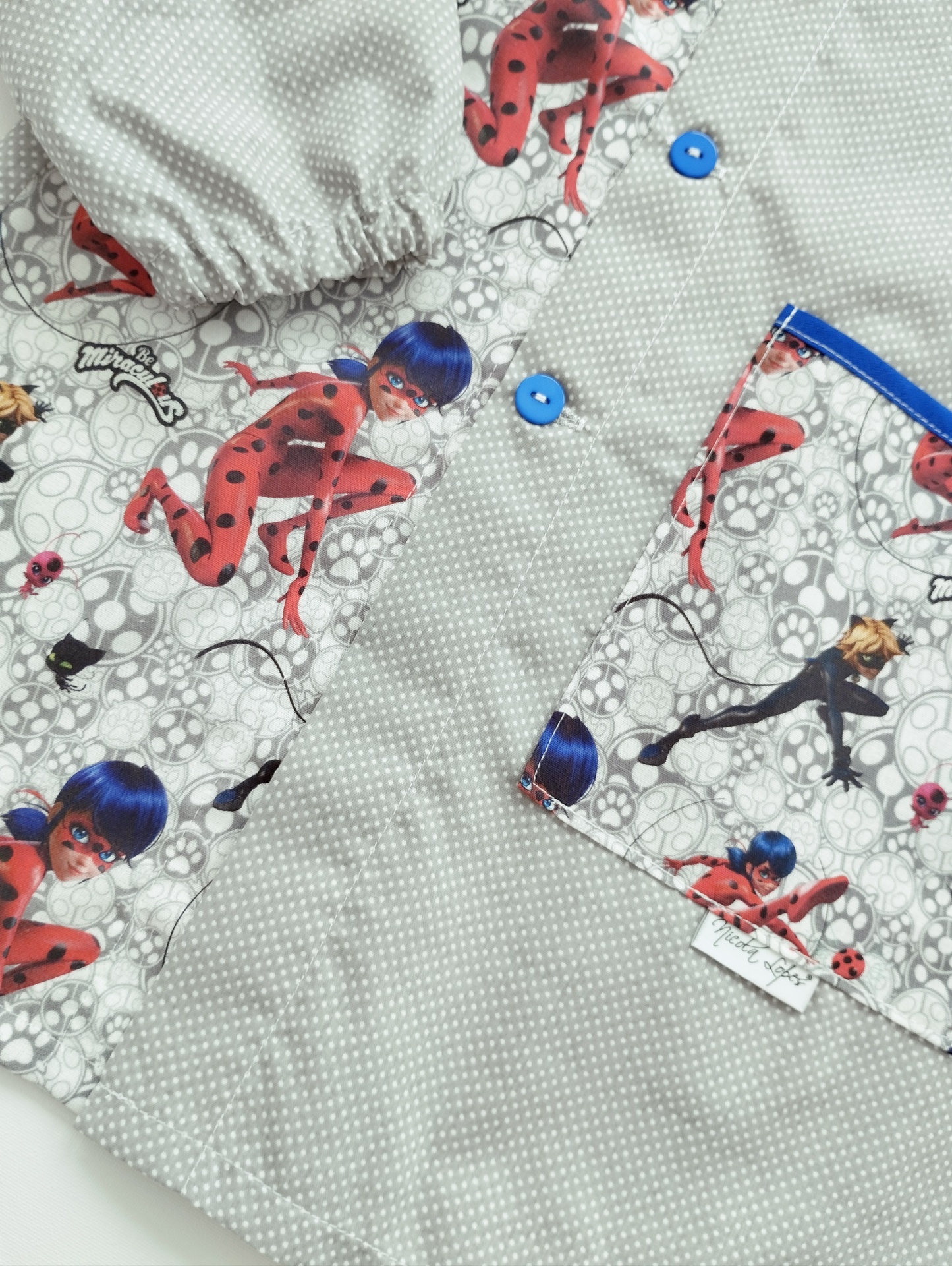- Tecido pintinhas cinza, padrão da Ladybug & Cat Noir