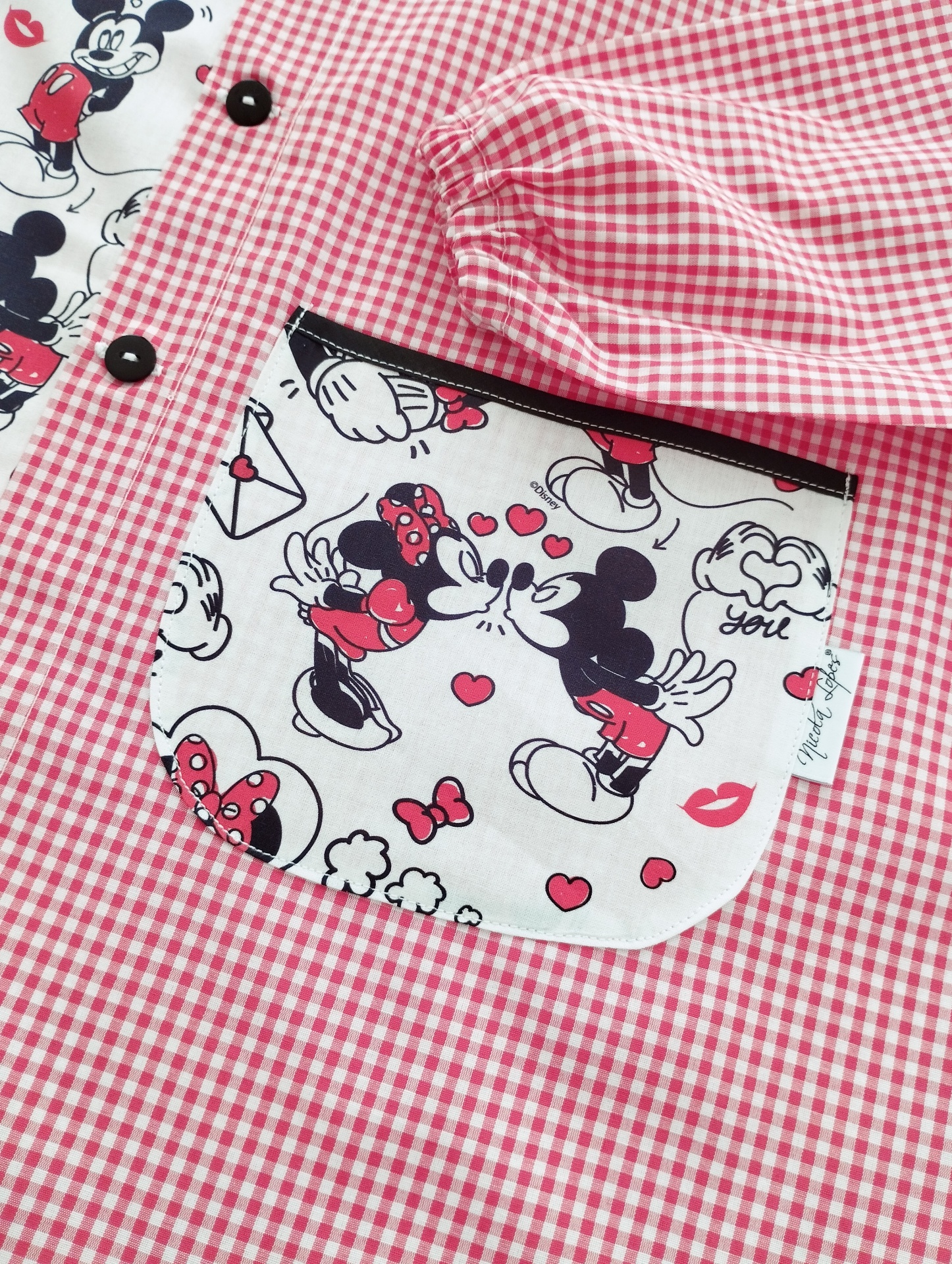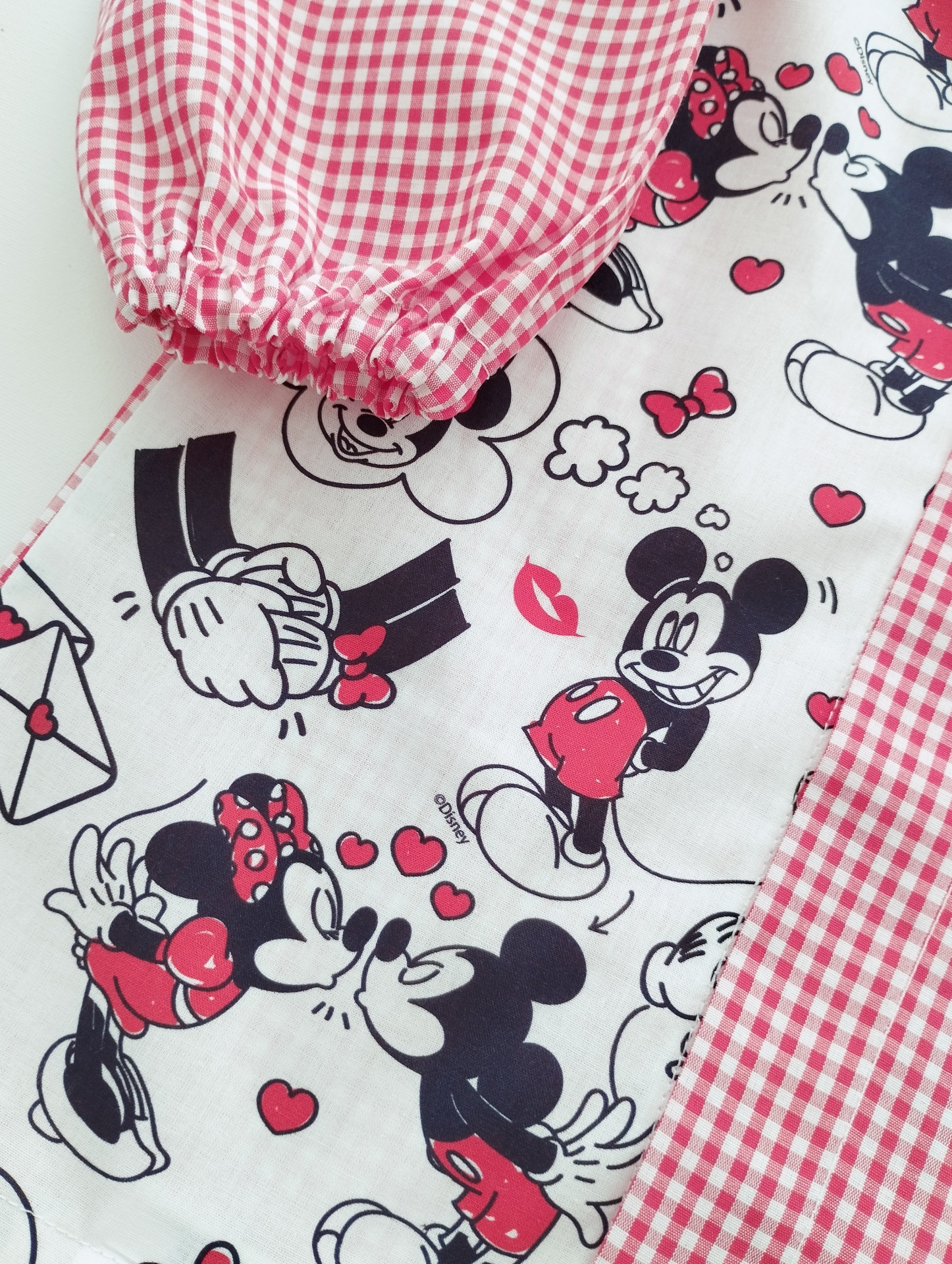 - Xadrez cor vermelho, padrão fundo branco da Minnie e do Mickey!