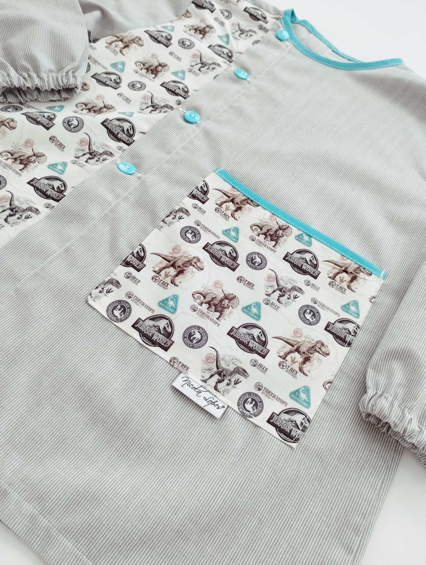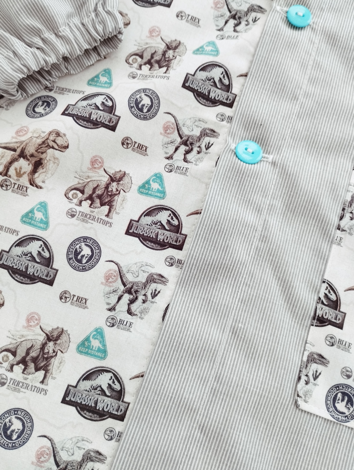 - Tecido com riscas finas em cinza, padrão Jurassic World!