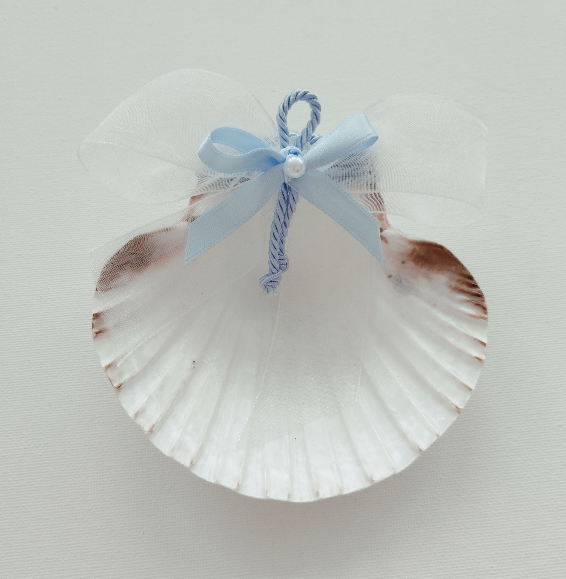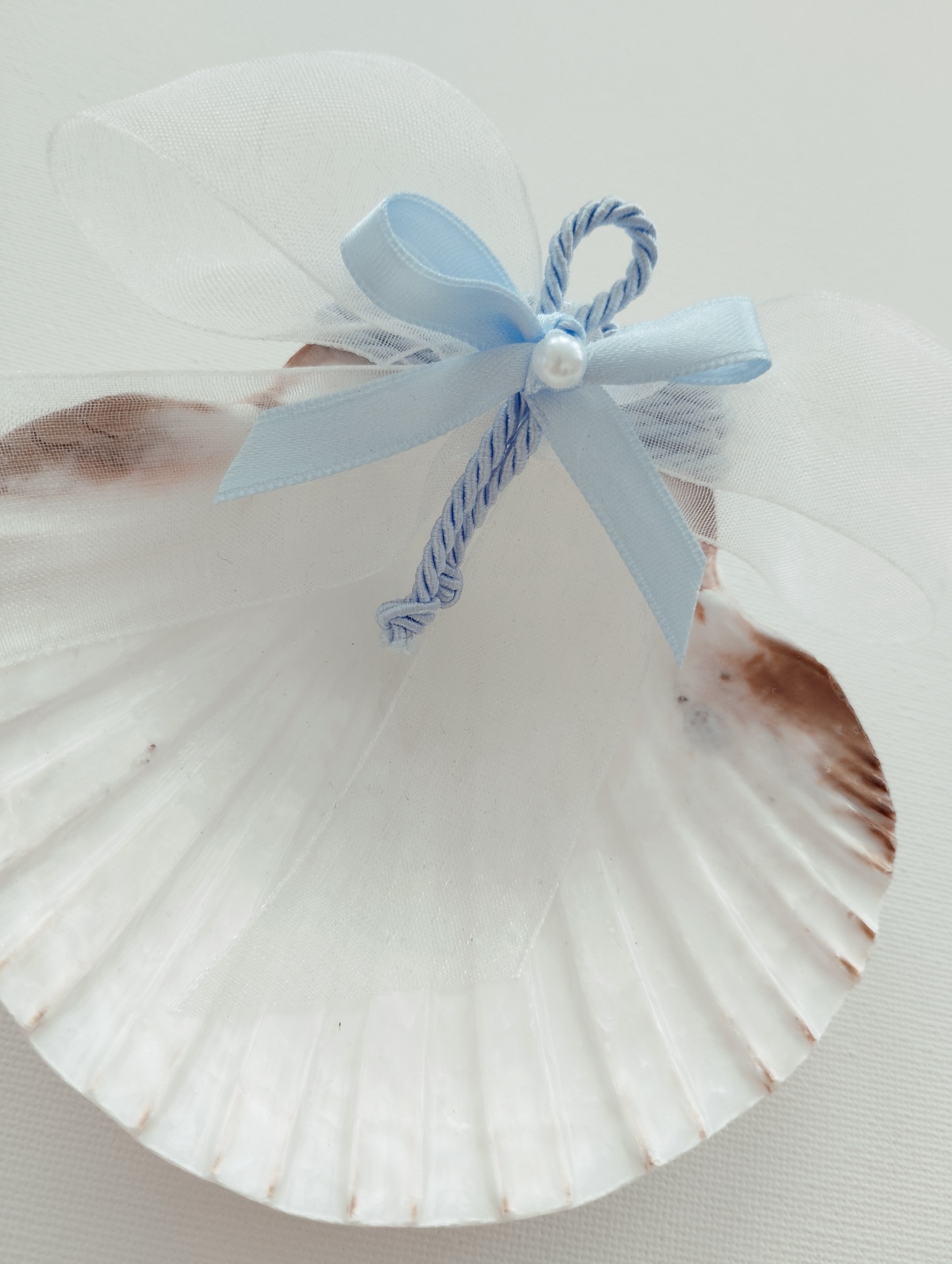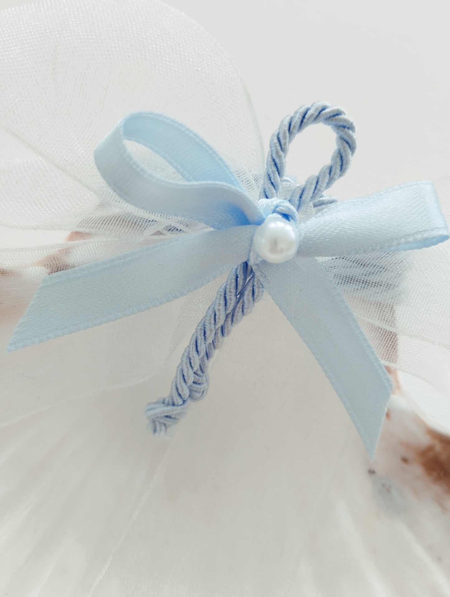 Decorada com cordel e fitas de cetim em Cor Azul Bebé