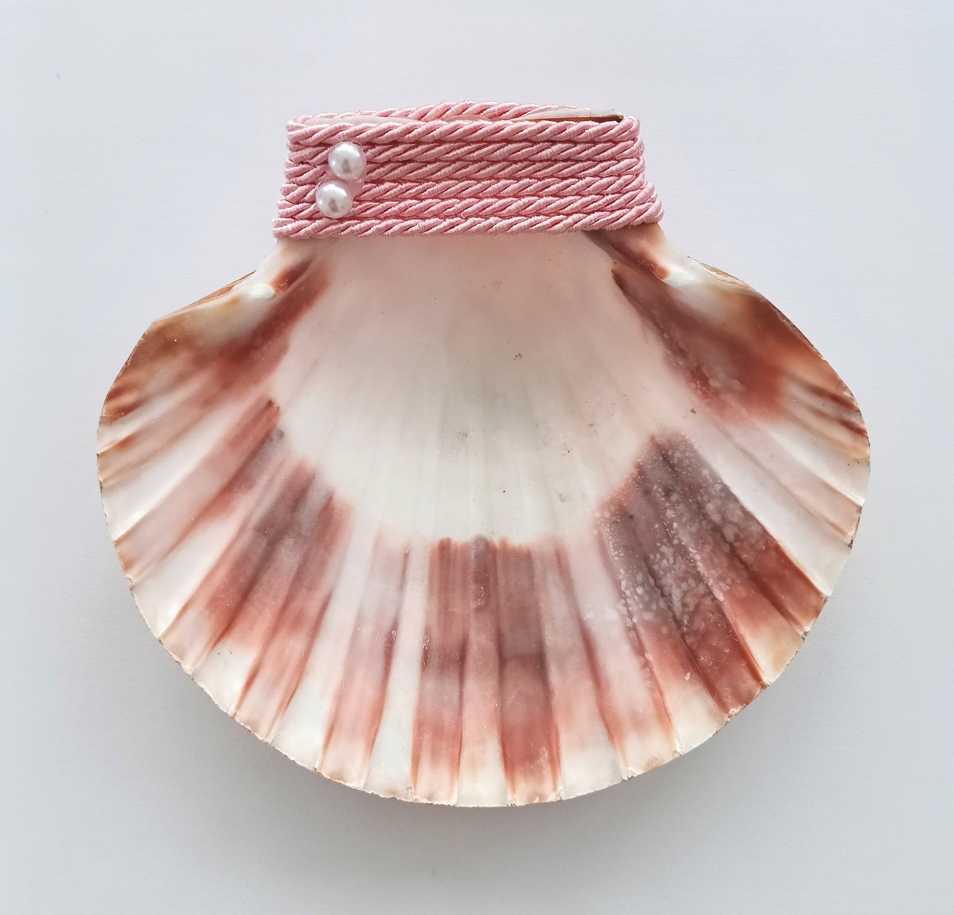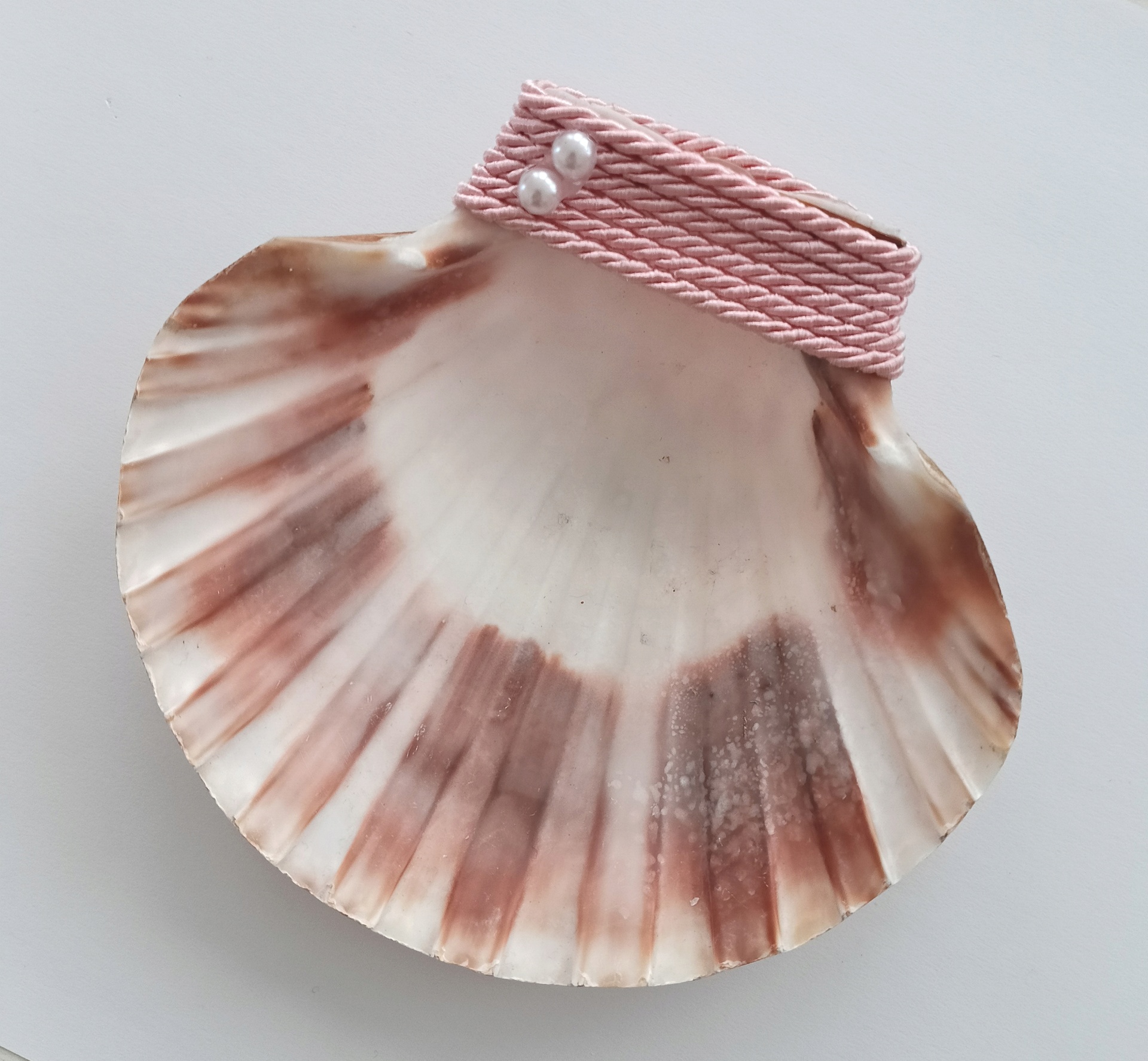 Decorada com cordel cor rosa bebé e pérolas brancas!