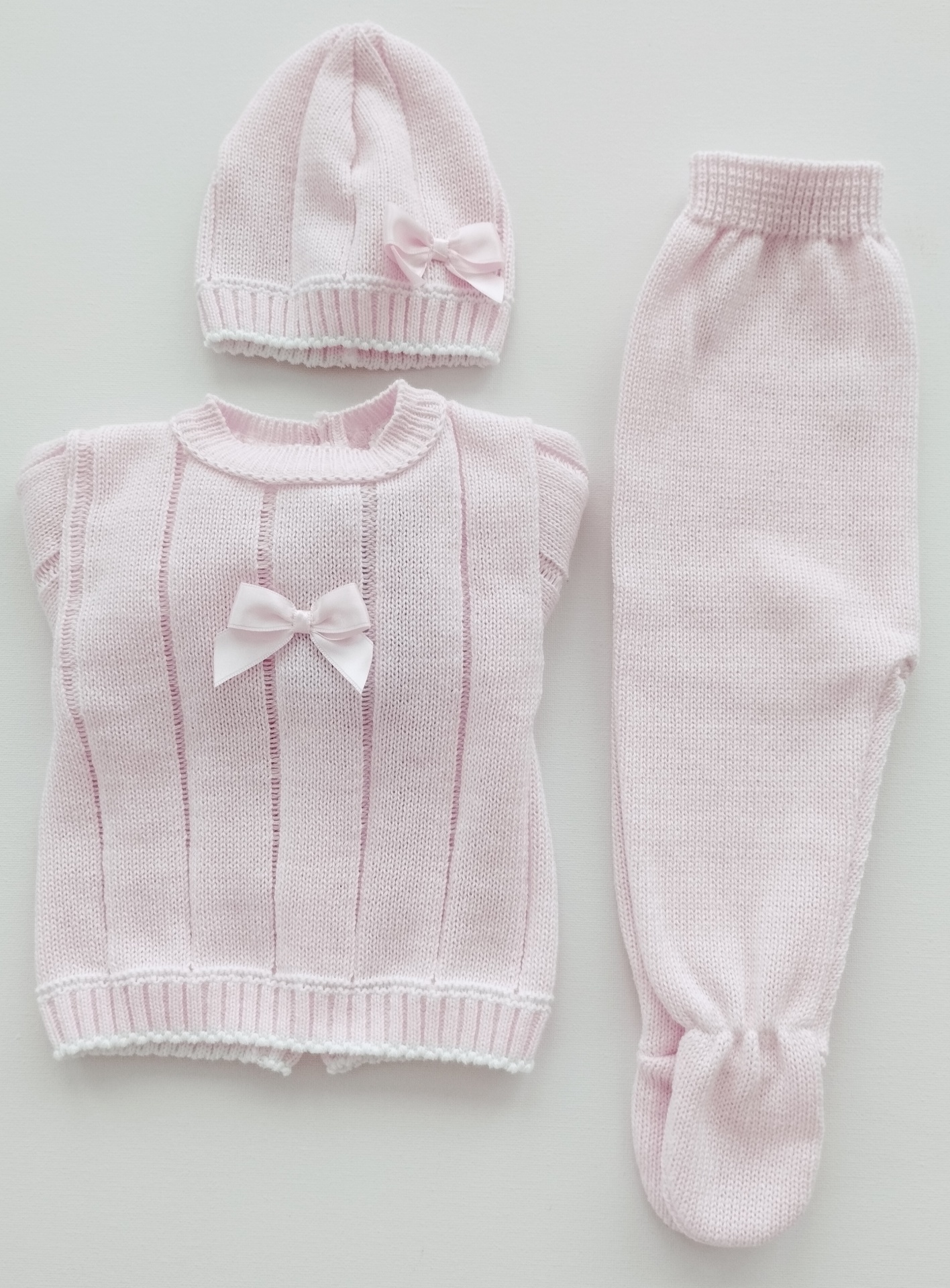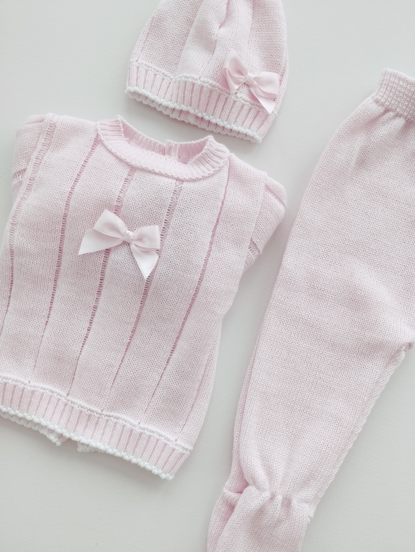 Conjunto em malha para bebé, composto por três peças, é a escolha ideal para garantir conforto e elegância ao seu Bebé.