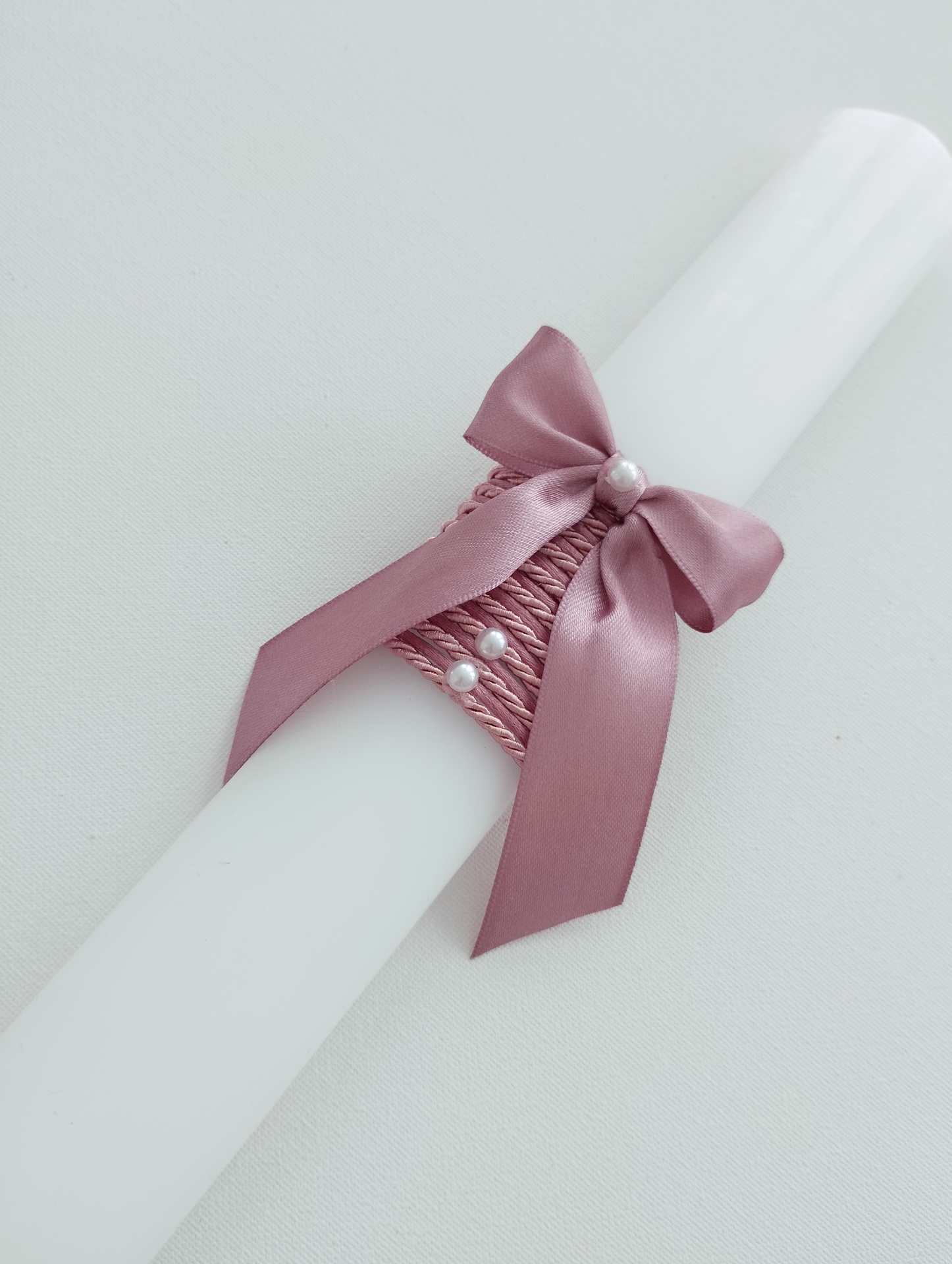 - fita de cetim rosa velho formando um laço