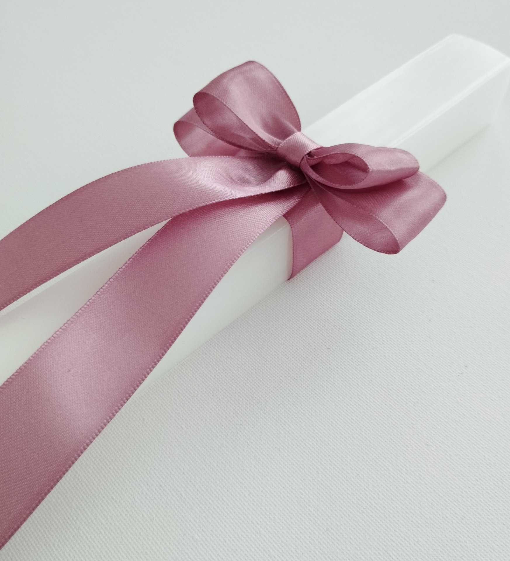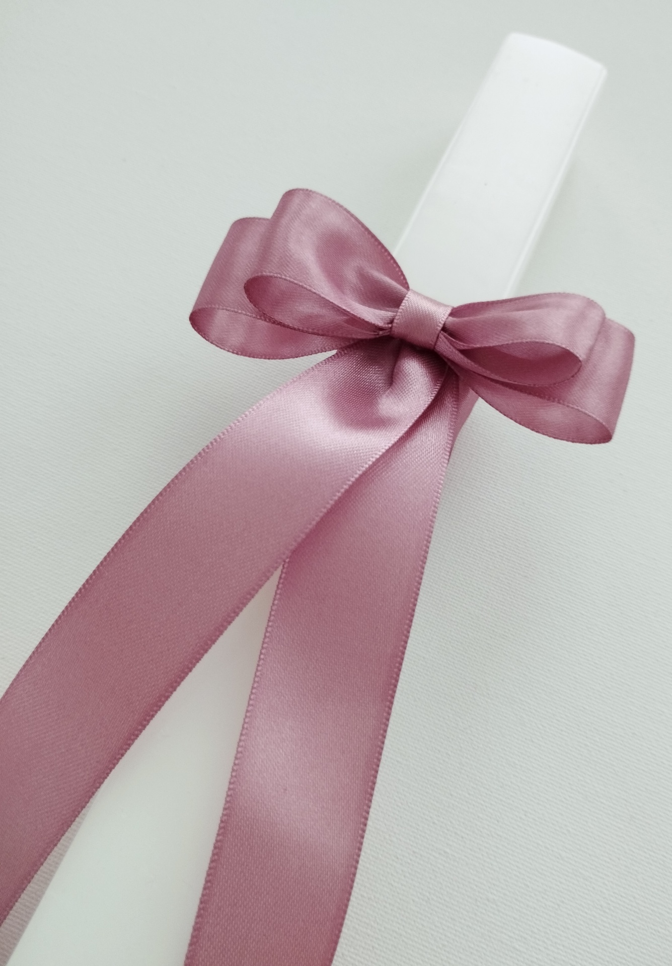 - fita de cetim rosa velho, formando um laço