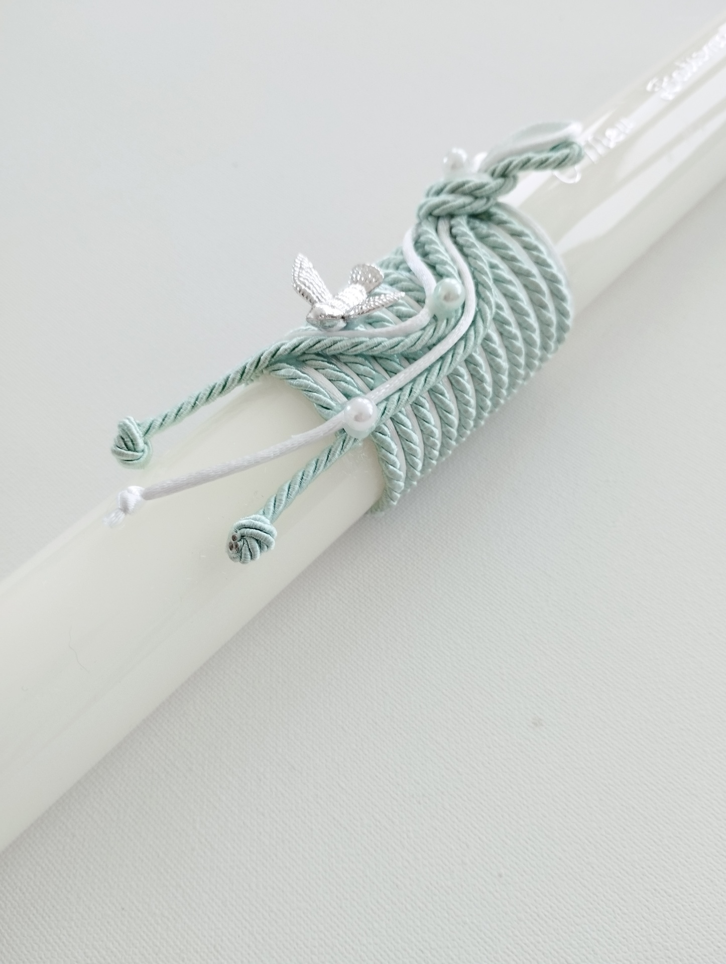 - cordel verde água e branco