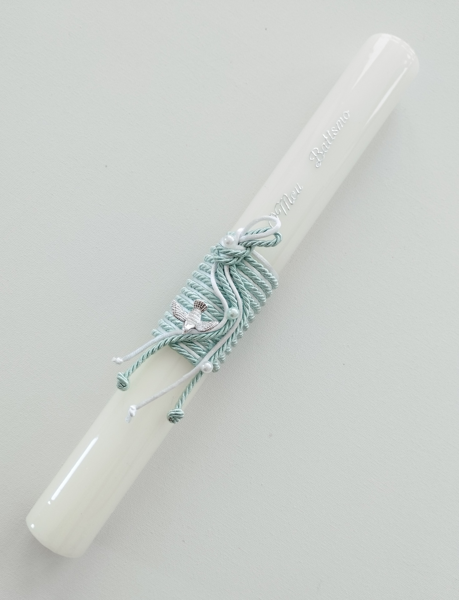 Vela Batismo Redonda Verde água